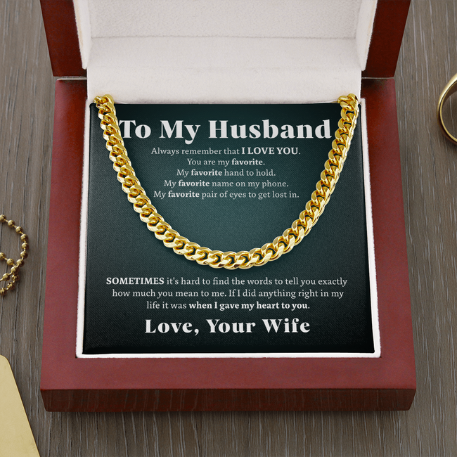 To My Husband - Gave My Heart to You | Stainless Steel and 14k Gold Cuban Link Necklace